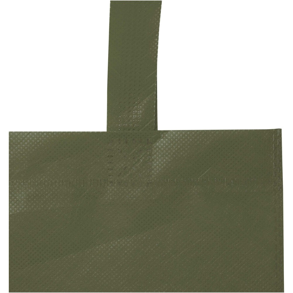 Az EcoSeal GRS újrahasznosított mini bevásárlótáska tartós és szakadásálló, GRS tanúsítvánnyal rendelkező RPET nem szőtt anyagból készül, ultrahangos hegesztéssel kialakított, öltésmentes és erős szerkezettel. A táska egy nyitott főrekesszel, hajtott talprésszel és 12 cm-es fülhosszal rendelkezik, így praktikus és többször használható megoldást kínál vásárokra, rendezvényekre és ajándékozáshoz. Űrtartalma: 3 liter. Teherbírása: maximum 3 kg.