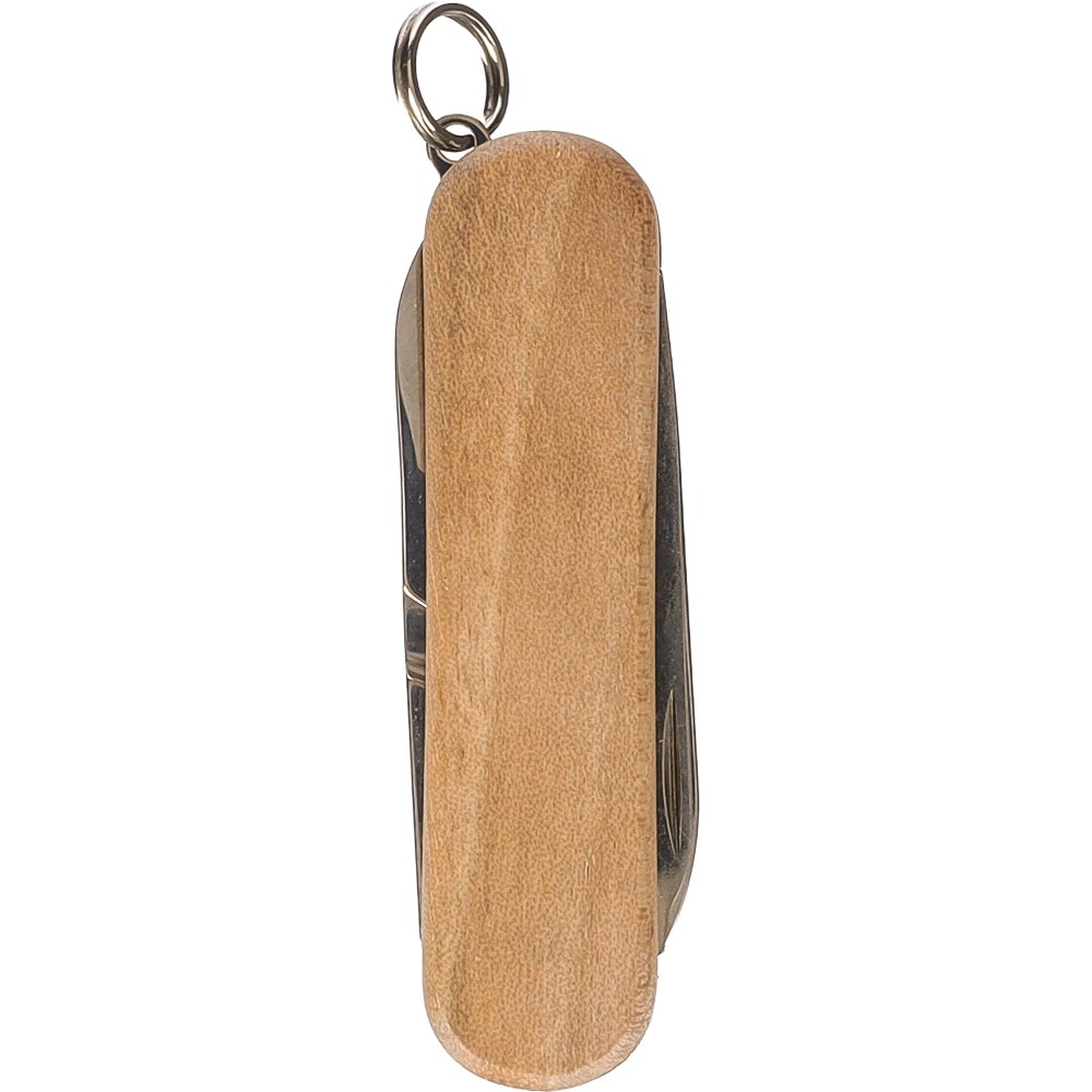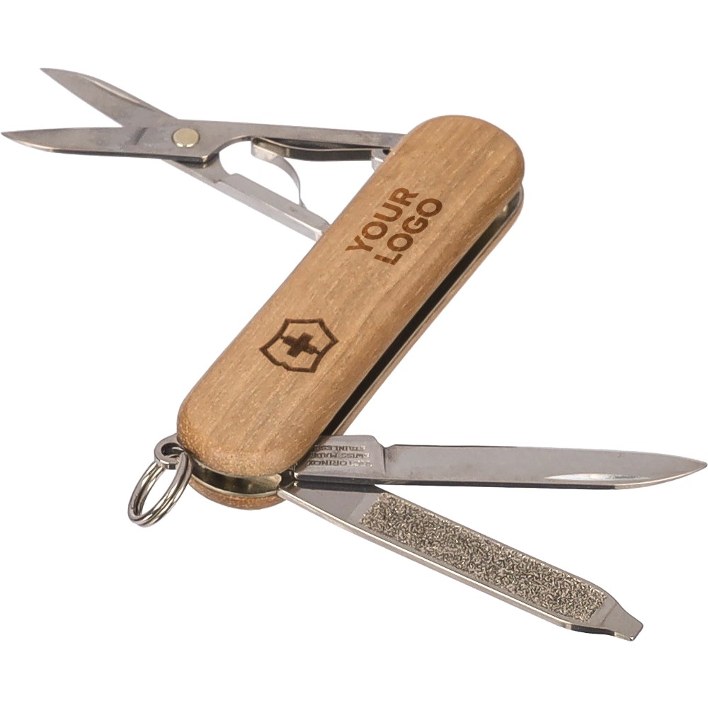 Ez a Victorinox Classic SD Wood zsebkés a kompakt funkcionalitást ötvözi a természetes diófa borítással. A kés öt praktikus funkcióval rendelkezik: egy kis késsel, ollóval, körömreszelővel, 2,5 mm-es csavarhúzóval és egy kulcskarikával, így tökéletesen alkalmas a mindennapi használatra. A diófa markolat klasszikus megjelenést kölcsönöz a késnek, míg a rozsdamentes acél eszközök hosszan tartó teljesítményt biztosítanak. A kulcskarikának köszönhetően könnyen rögzíthető kulcscsomóhoz, így mindig kéznél van. A kés dobozba csomagolva érkezik, és a Victorinox svájci bicskáitól elvárt, megbízható minőséget nyújtja.