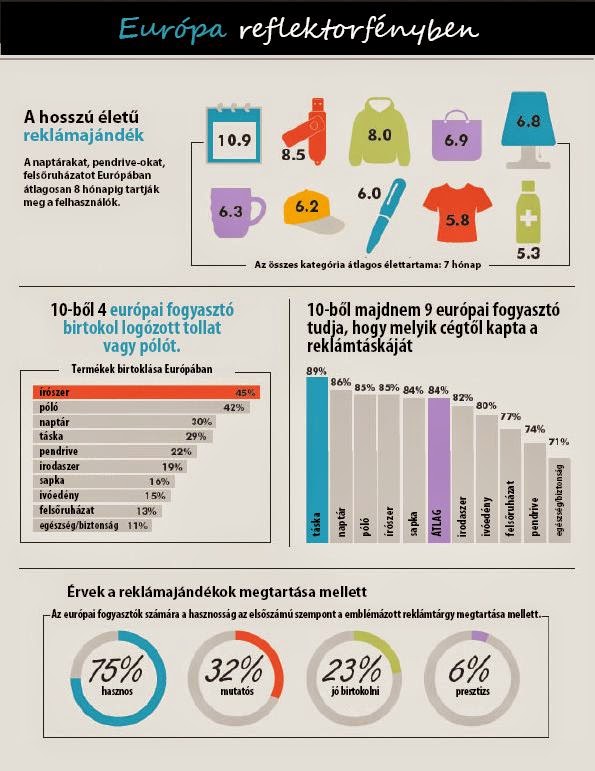 Egy neves amerikai reklámintézet felmérést készített arról, hogy különböző országokban hogyan fogadják, mennyi ideig tartják meg, használják az általános emblémázott reklámtárgyakat a fogyasztók.