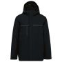 100% poliészter. Külső: 100% poliészter ripstop. 2-rétegű ragasztott légáteresztő 3000g/m2/24h és vízálló 10000 mm-es szövet. Megfelel az EN343:2019 szabványnak. 3. osztály (a ruházat véd az eső ellen). Bélés: 100% poliészter. Belső párnázat: 100% poliészter. Elöl: 2 oldalzseb és 1 mellzseb vízálló nejlon cipzárral. 1 belső zseb szakadásgátlós rögzítéssel. Cipzár viharzárral és szakadásmentesítő zárral. Kontrasztos szalag a mellkason. Bélelt 3 paneles kapucni, amely állítható cipzárral, és tépőzárral. Állítható mandzsetta tépőzárral. 2 részből álló bélés: felső rész fleece, alsó rész párnázott. Akasztóhurok a nyak belső oldalán. Letéphető márkajelzés. Emblémázás: Hímzés