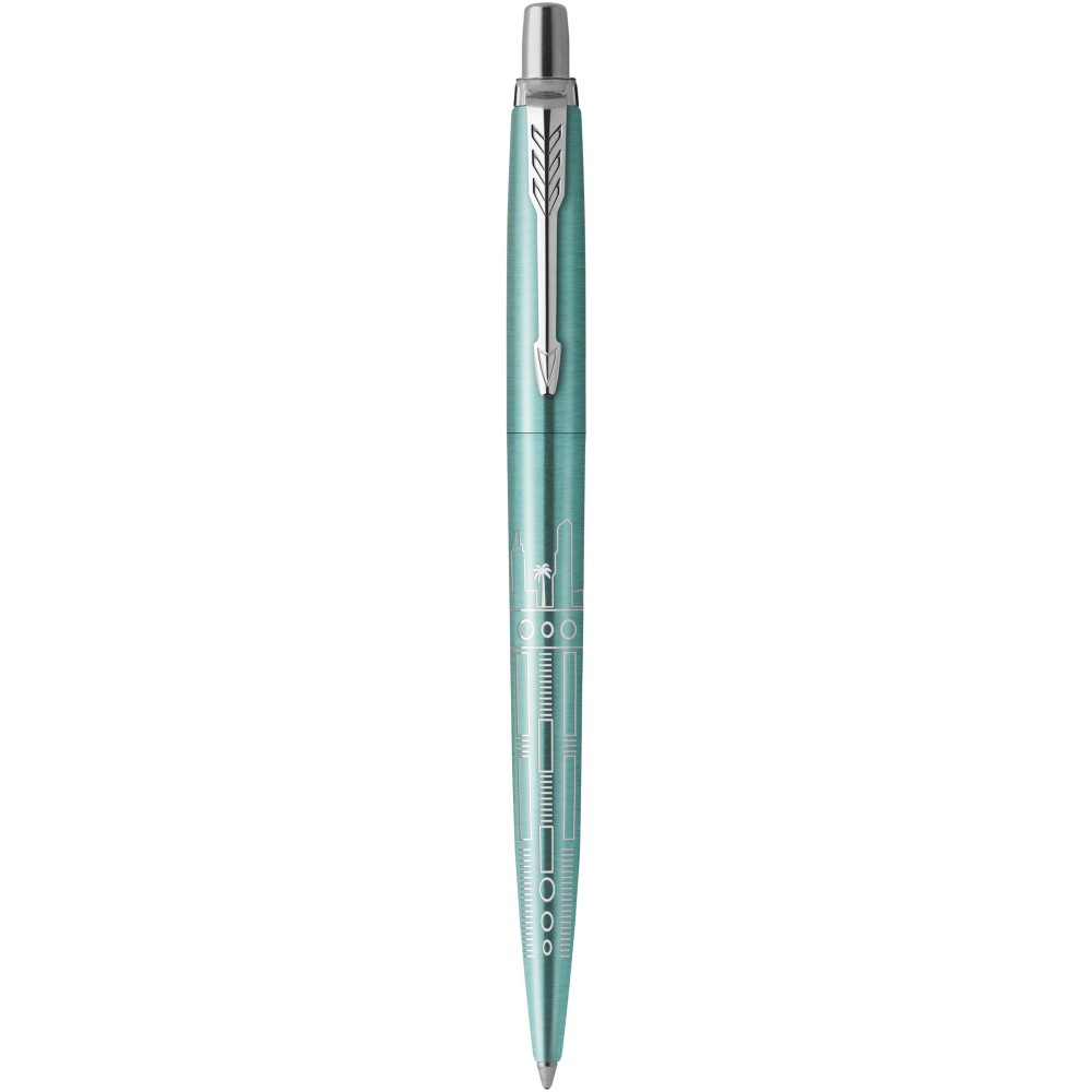 A Parker Jotter SE Global Icons golyóstollat kék tollbetéttel, ajándékdobozban szállítjuk. A Parker Jotter SE Global Icons a Parker jól ismert márka különleges kiadású tollsorozata. Az SE a Special Edition (Különleges Kiadás) rövidítése, míg a Global Icons téma a világ ikonikus elemeit megjelenítő dizájnt sugall. Írási hossz: 2000 méter. Emblémázás: Gravírozás