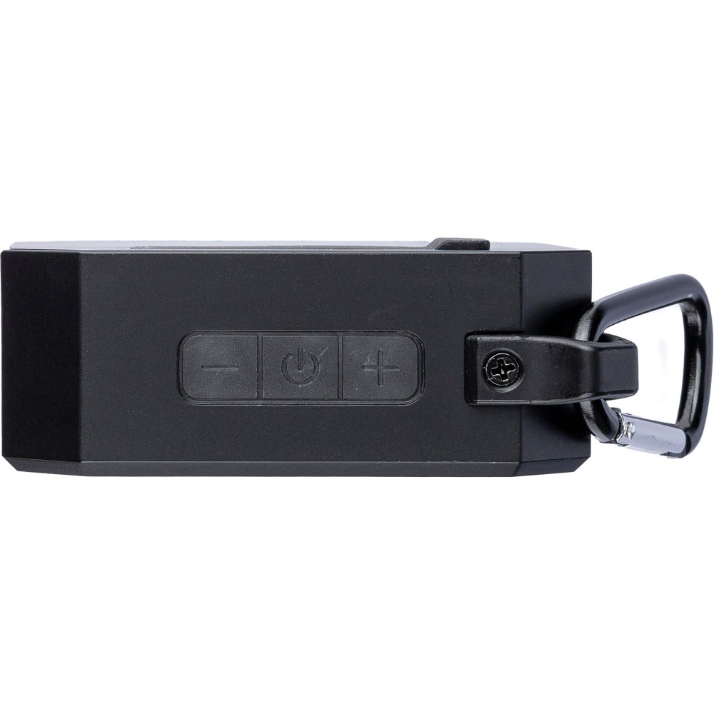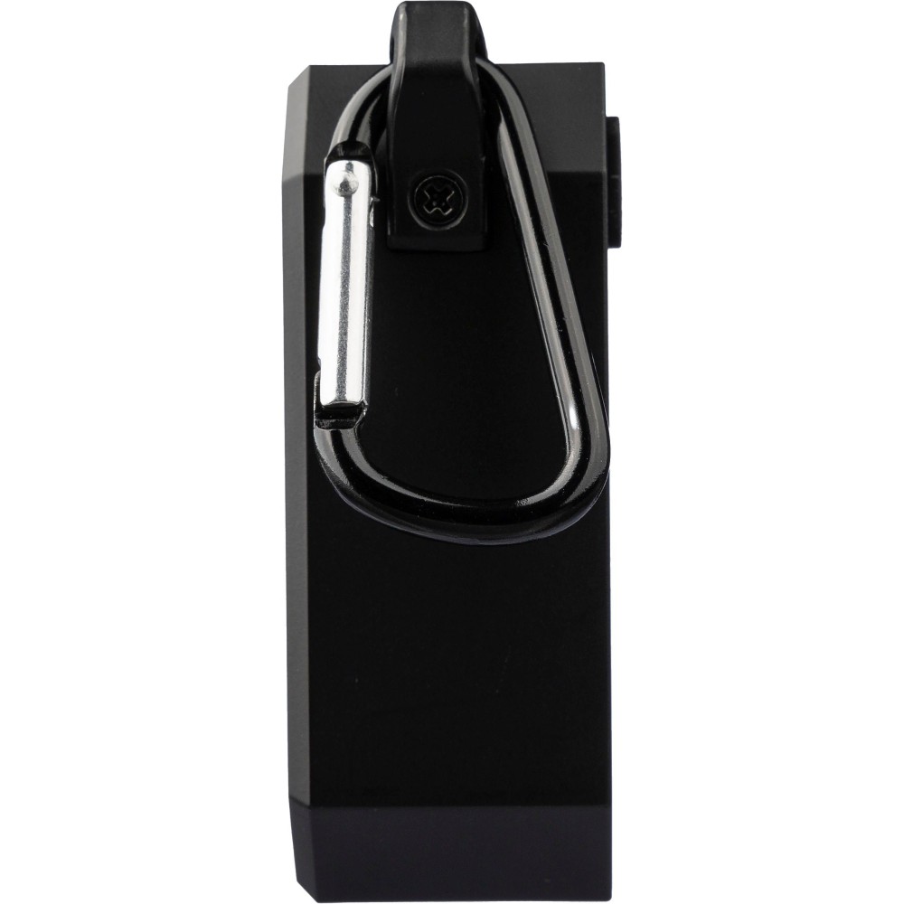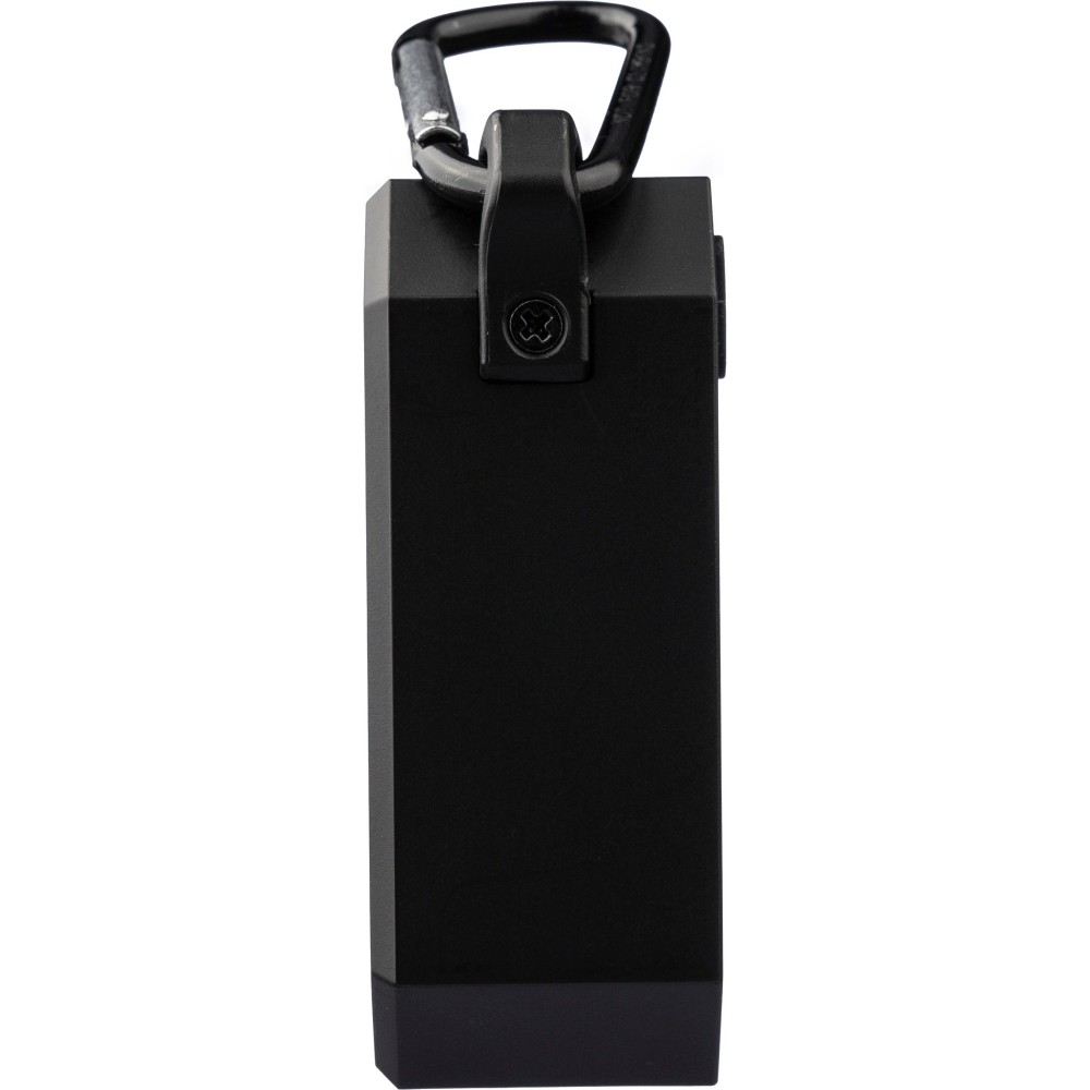Hangszóró karabinerrel és műanyag klipsszel. IPX4 védelemmel. 3W teljesítmény, DC 5V bemenet, 300mAh beépített újratölthető akkumulátor, kb. 2 órás lejátszási idővel. Működési távolság: 15-20 méter, jel-zaj arány: 87 dB. Frekvenciatartomány: 100 Hz - 20 kHz. Tartalmaz egy 50 cm-es Type-C töltőkábelt. Vezeték nélküli kapcsolattechnológia: 5.2. Egyenként barna kartondobozba csomagolva. Emblémázás: Tamponnyomás