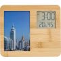 Bambusz időjárás állomás képkerettel. Funkciók: óra, hőmérő és páratartalom-mérő. Az elemet tartalmazza. Emblémázás: Gravírozás, Tamponnyomás