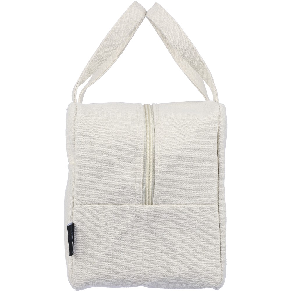 Hűtőtáska 330 g/m2 újahasznosított policotton anyagból, 210D poliészter béléssel és párnázott alumíniumfólia belsővel. 8 literes űrtartalommal, hordozópánttal, színben illeszkedő részletekkel és 5 kg teherbíró képességgel. Címkét tartalmaz. Emblémázás: Szitanyomás