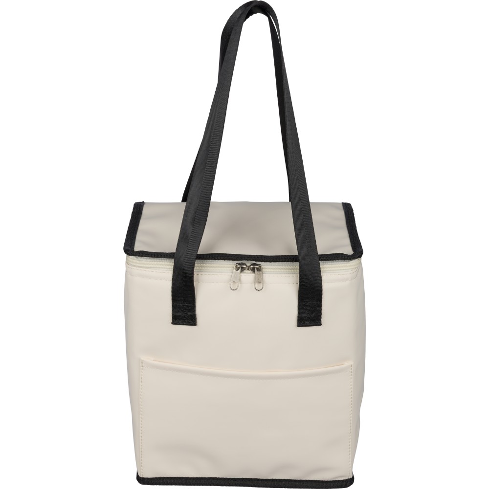 Újrahasznosított PU anyagból készült hűtőtáska 9 literes űrtartalommal, 210D újrahasznosított poliészter béléssel. 2,5 × 66 cm méretű hosszú fülekkel és elülső tárolózsebbel rendelkezik. A belső címkén újrahasznosított alapanyagra utaló logó található.