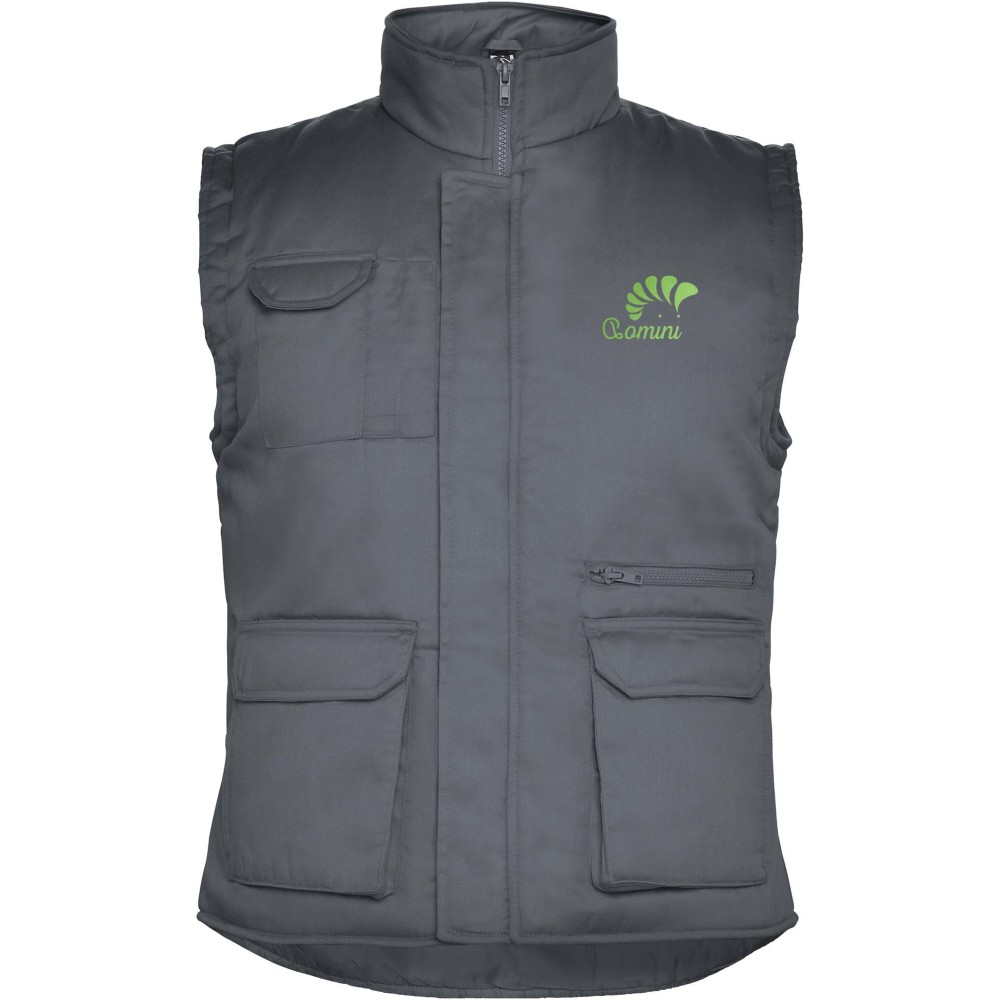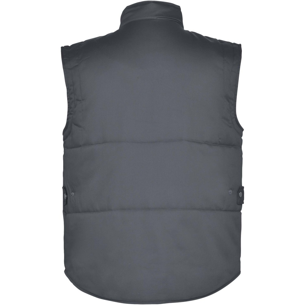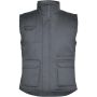 Többfunkciós munkavédelmi mellény magasított nyakkal. A jobb oldalon egy külső mobiltelefontartó zseb, elöl két oldalsó nyílással rendelkező redőzött zseb, valamint két kisméretű tolltartó zseb található. A belső oldalon egy tépőzáras zseb és egy további cipzáras zseb biztosítja a tárolást. A kényelmes viseletről a hosszított hátrész és az állítható derékbőség gondoskodik.