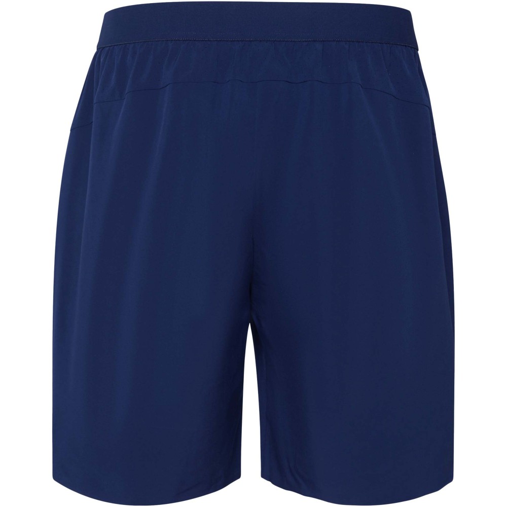 Könnyű és rugalmas. Újrahasznosított poliészterből készült. Gumis derék húzózsinórral és rugalmas pánttal hátul. Nagyméretű oldalzsebek. Hegesztett szegélyöltések. Mikroperforált anyaggal kombinálva a jobb légáteresztés érdekében. Eltávolítható címke. Emblémázás: Szitanyomás