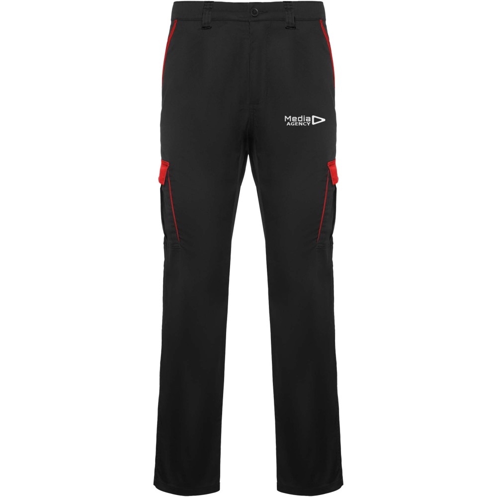Hosszú szárú munkásnadrág, amely kényelmes és strapabíró anyagból készült. A nadrág hátul gumírozott derékkal rendelkezik az állíthatóság érdekében. Kontrasztos színű övbújtatókkal, zsebfedőkkel, hajtásokkal és szegélyekkel díszített. A praktikus kialakítást két elülső zseb, két tépőzáras fedéllel ellátott, hajtogatott oldalsó zseb, valamint két szintén tépőzáras fedéllel záródó hátsó zseb biztosítja.