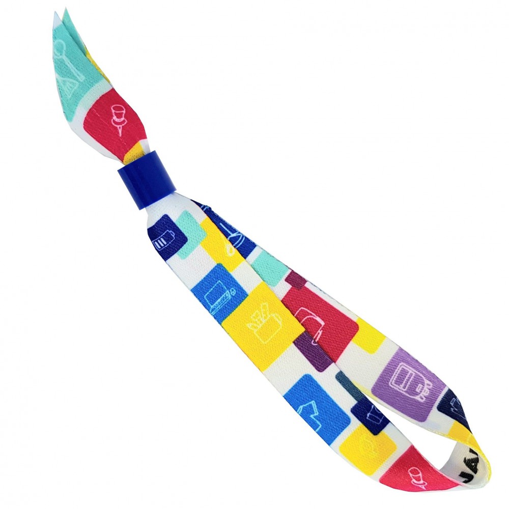 Teljes felületen szublimációs eljárással nyomható 15 mm széles karpánt konferenciára, fesztiválra. Nem csak a biztonságos beléptetést szolgálja, hanem emlékként is elrakják az emberek. Csak dekorálva rendelhető. Emblémázás: Szublimálás