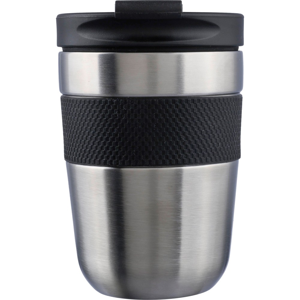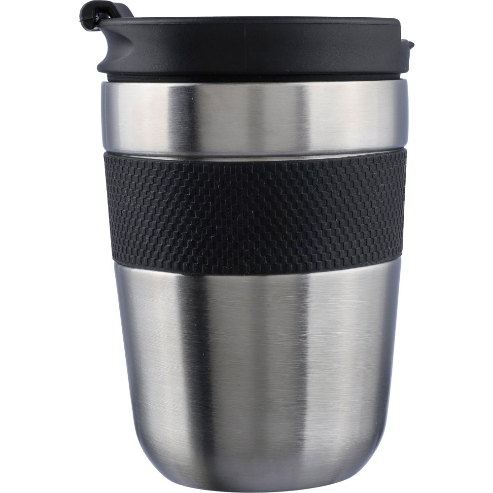 Duplafalú bögre PP fedéllel és szilikon fogóval. A tartalmát 4 órán át melegen és 6 órán át hidegen tartja. A belső rész 304-es rozsdamentes acélból, a külső rész 201-es rozsdamentes acélból készült. Egyenként barna kartondobozba csomagolva. Űrtartalom: 300 ml. Emblémázás: Gravírozás