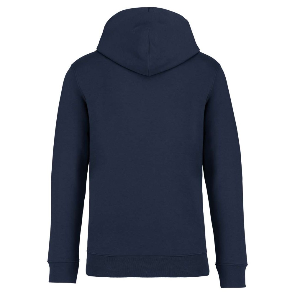 85 % bio, fésült pamutból és 15 % újrahasznosított poliészterből készült. Unisex. Egyenes szabás. Méretcímke organikus pamut és újrahasznosított poliészter logóval. LSF (Low Shrinkage Fleece: előzsugorított polár) kezelés. Kapucni. 1x1 bordás szegély és kézelő. Duplatűzés a kézelőn, a szegélyen és a nyaknál. Szalagozott nyakbelső hátul. Bélelt kapucni, a nyaknyíláson nincs felülvarrás, csak egy megkötés, hogy a húzózsinór a felső részen maradjon. Kerek húzózsinór a kapucnin fém véggel. Kenguru zseb. Nincs márkajelzés a nyakrészen, csak egy méretcímke a könnyű dekorálás érdekében. Karton függőcímkével érkezik, amely felsorolja a termék előállításához felhasznált környezetbarát anyagokat. Organikus pamutfonal. OEKO-TEX N CQ1007/7 STANDARD 100 tanúsítvánnyal rendelkezik. IFTH. 350 g/m2. Emblémázás: Hímzés, Szitanyomás