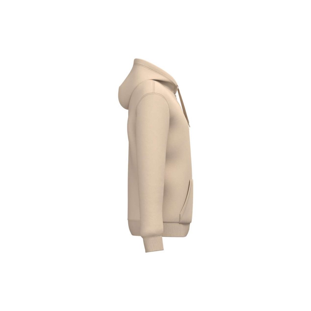 50% gyűrűs fonású pamut / 50% újrahasznosított poliészter, fésült pamut. Egyenes szabású, vágott és varrott. 1x1 bordás kötés a nyakkivágás, a mandzsetta és az alsó szegély jobb megjelenése érdekében. Kenguruzseb, nylon cipzár. Policotton dzsörzé bélésű kapucni lapos húzózsinórral. Színben illeszkedő dzsörzé szalagos belső a nyakkivágásnál. Csak méretcímke márkajelzés nélkül. 280 g/m2 Emblémázás: Hímzés, Szitanyomás