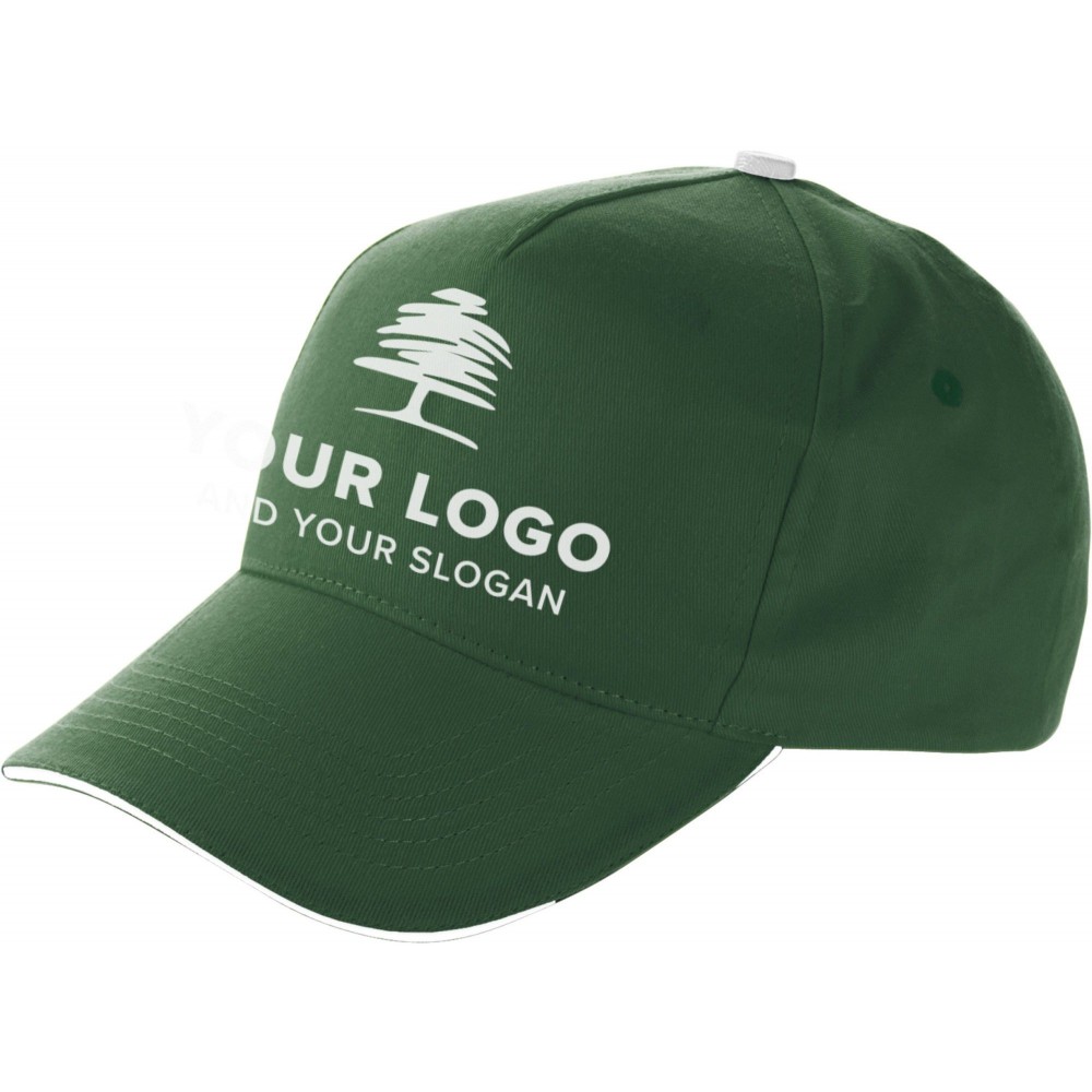 5 paneles sapka szendvics simléderrel, tépőzárral. Anyaga: 160 g/m2, 100% pamut. Emblémázás: Hímzés, Szitanyomás