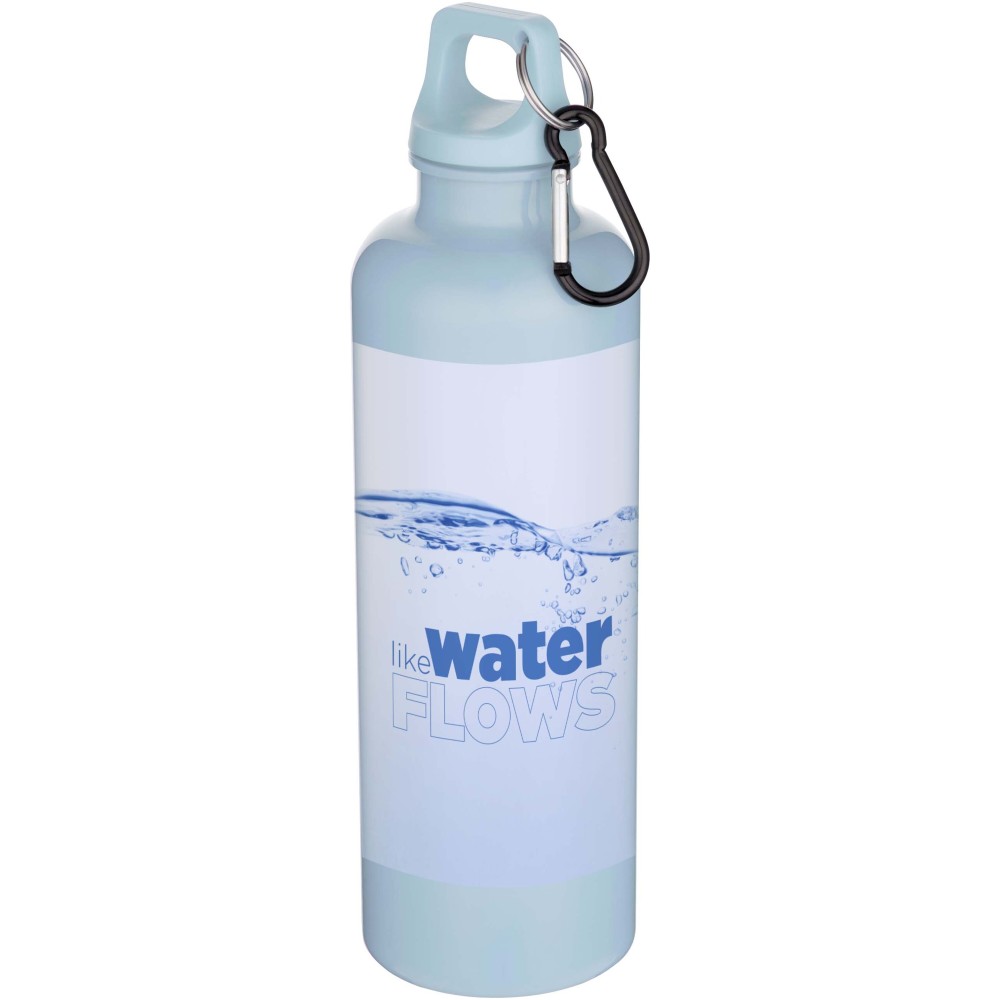 Az RCS tanúsítvánnyal rendelkező RPET-ből készült, tartós, mégis könnyű, 750 ml-es kulacs lehetővé teszi a folyamatos hidratálást. Tökéletes kísérő sportoláshoz, kirándulásokhoz vagy irodai használatra. A szimplafalú Oregon palack csavaros kupakkal rendelkezik, és bőséges felületet kínál bármilyen logó elhelyezésére. A mellékelt karabiner segítségével (mely mászásra nem alkalmas) a kulacs biztonságosan táskához rögzíthető. A termék megfelel az EFSA által jóváhagyott PET újrahasznosítási szabályoknak.