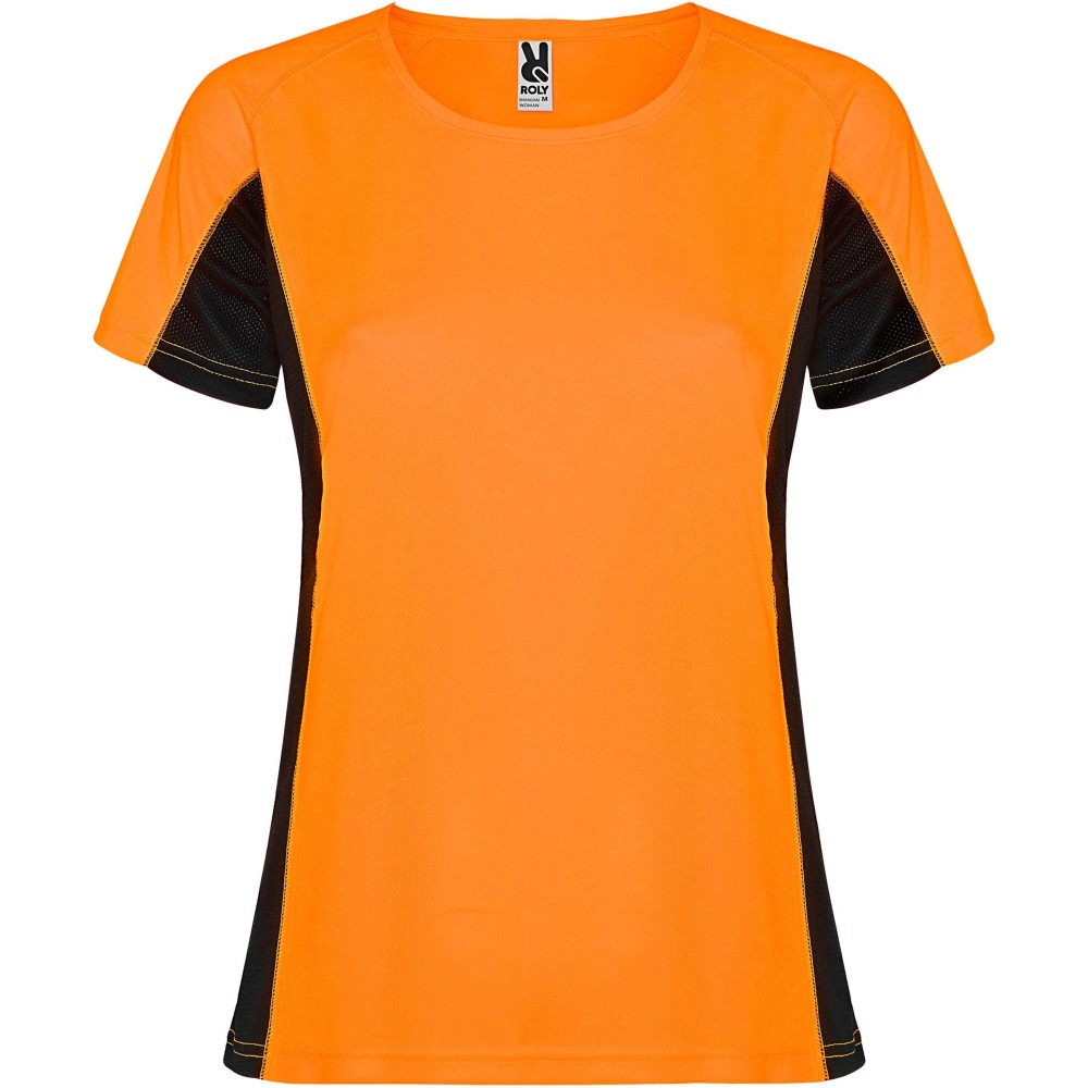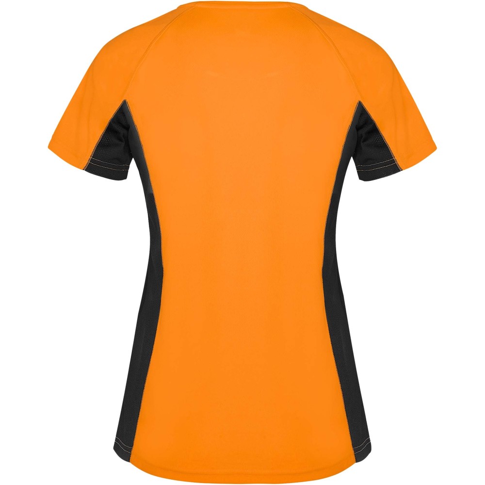 Roly Shanghai rövid ujjú női sportpóló, fluor orange, solid black