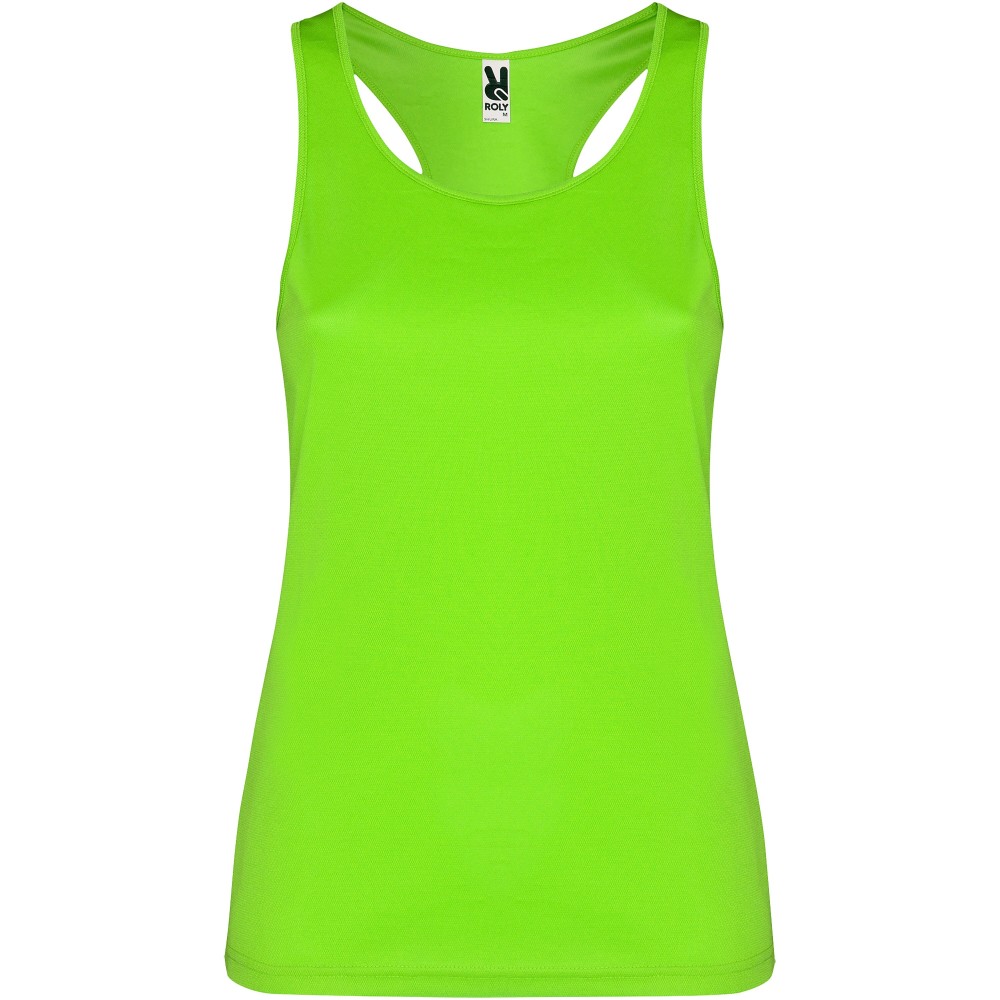 Technikai, légáteresztő, könnyen mosható és gyorsan száradó anyag. Bordázott karkivágások és nyakrész. Racerback kialakítás és oldalvarrások. Eltávolítható címke. 100% Polyester, 140 g/m2. Emblémázás: Szitanyomás