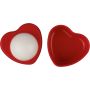 PP anyagból készült szív alakú tégely, benne 5,5 g vanília illatú ajakbalzsammal.