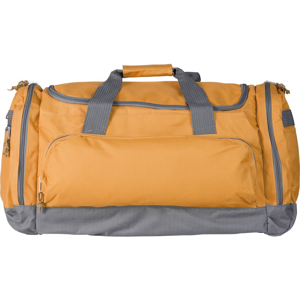 Utazótáska nagy cipzárral, oldal- és első zsebbel. 600D poliészter. Emblémázás: Szitanyomás