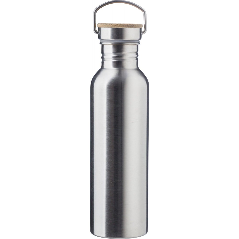 Rozsdamentes acél palack csavaros bambusz kupakkal. 700 ml. Emblémázás: Bögredekor, Gravírozás, Körszita